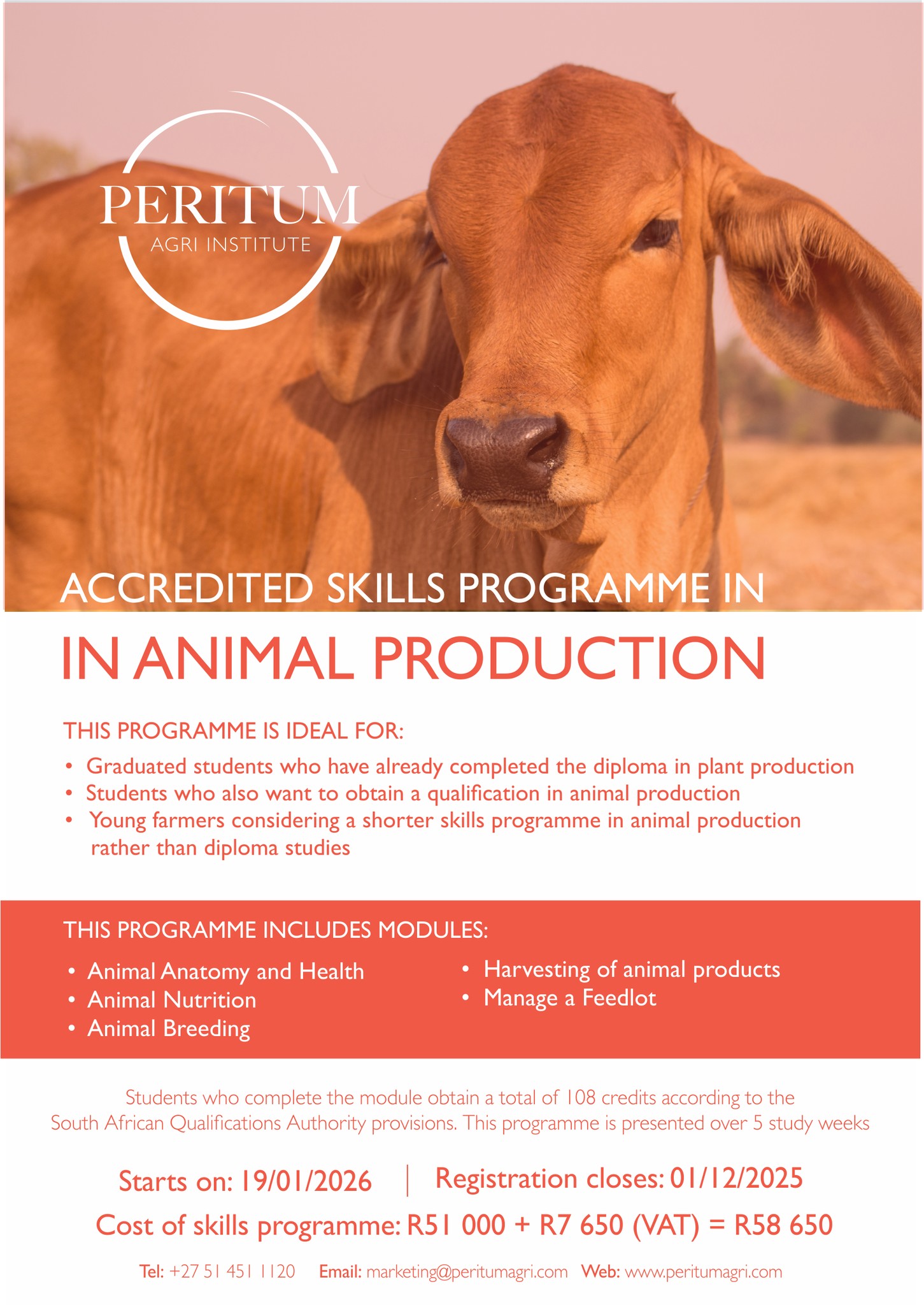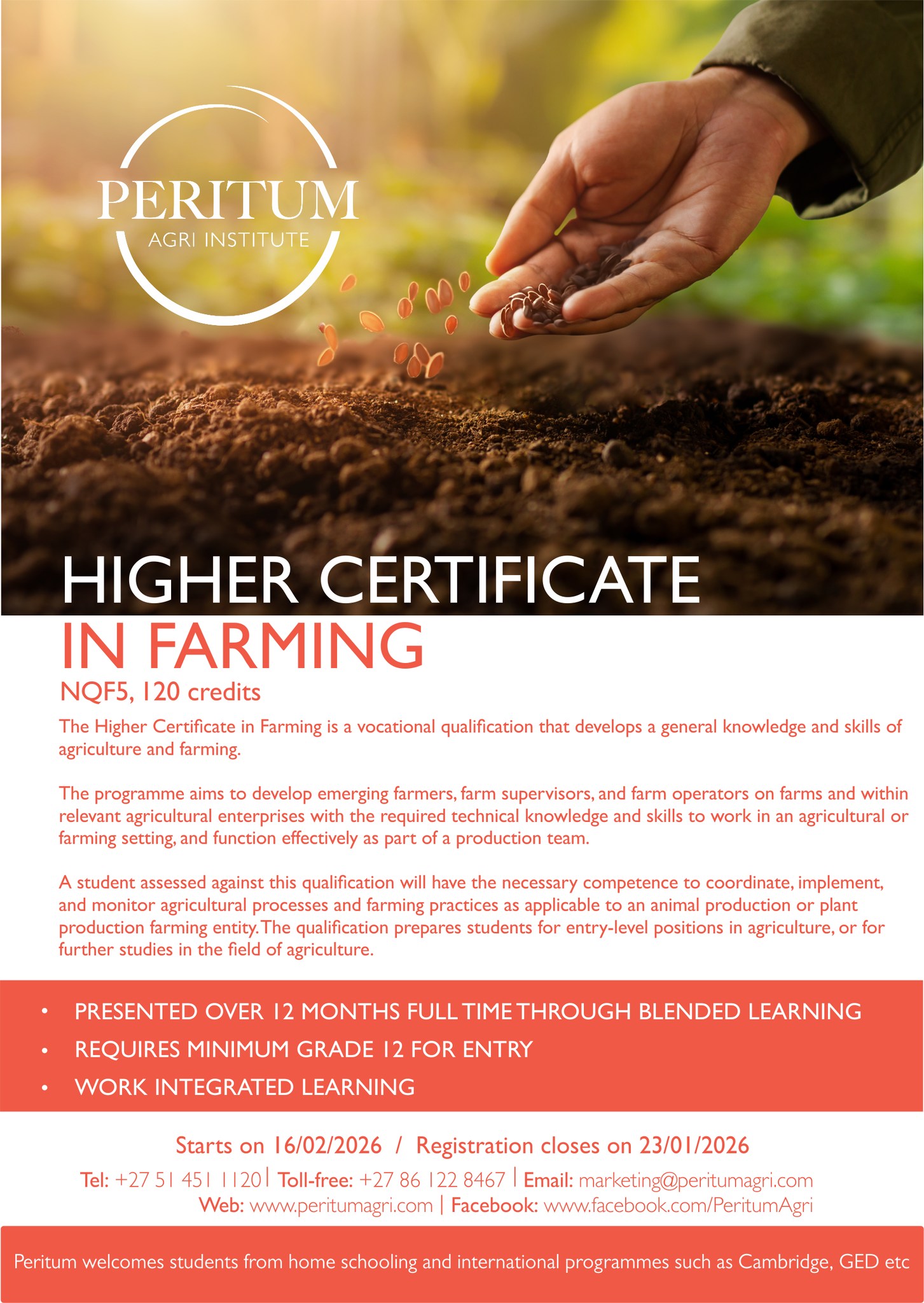 Learn more about the available qualifications, meet industry experts and find out how to register for 2026. Peritum Agri Institute offers accredited, practice-based agricultural training designed to prepare students for real careers in farming, agribusiness and retail.