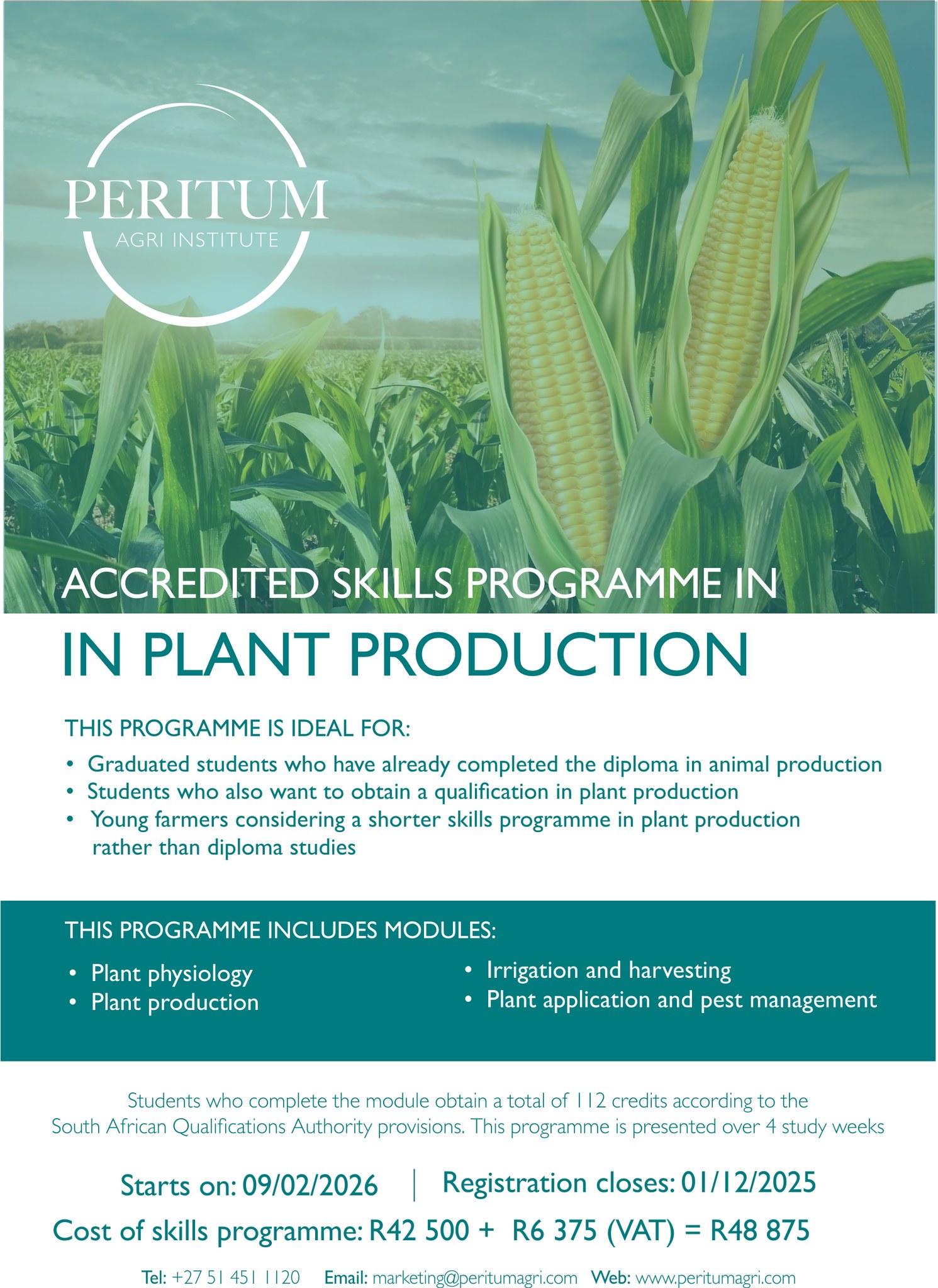 Matric 2025 learners, parents, aspiring farmers and agri-sector professionals are invited to attend the Peritum Agri Institute Open Day at 67 Olds Street at Spitskop in Bloemfontein, on 16 January 2026.